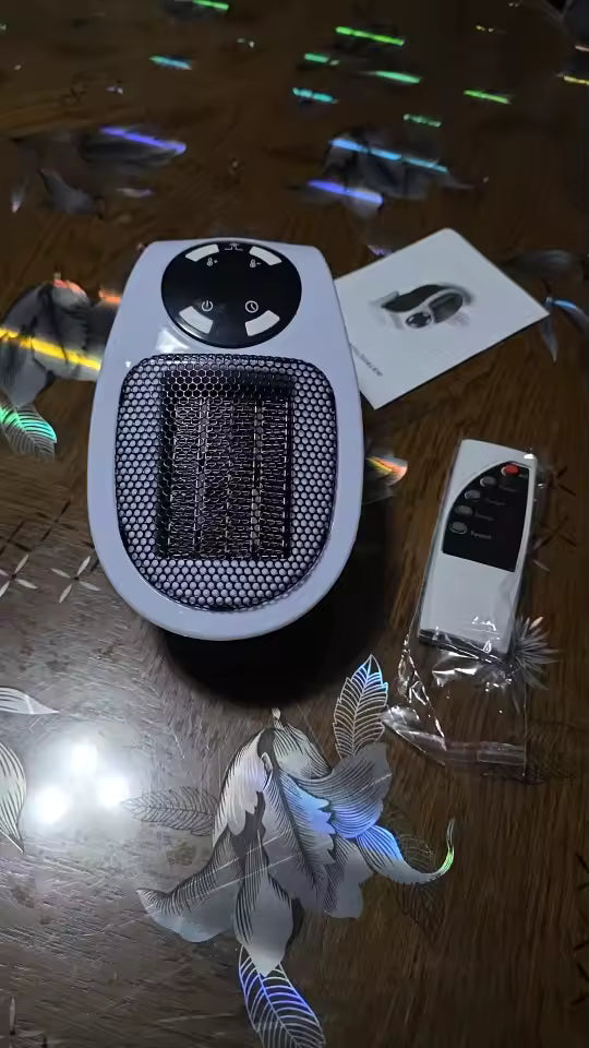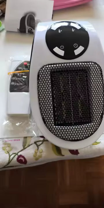 2. Mini grzejnik do gniazdka Kompaktowy mini grzejnik o mocy 350W, podłączany bezpośrednio do gniazdka. Idealny do ogrzewania małych pomieszczeń do 10 m² z regulacją temperatury 15–30°C.