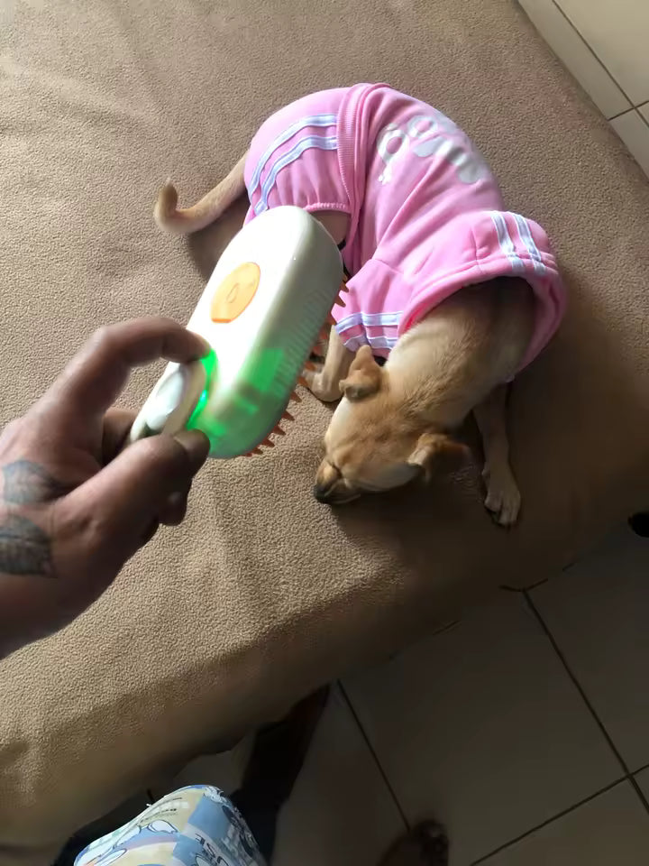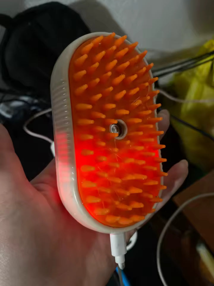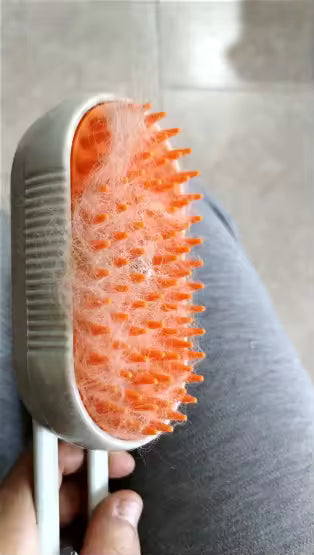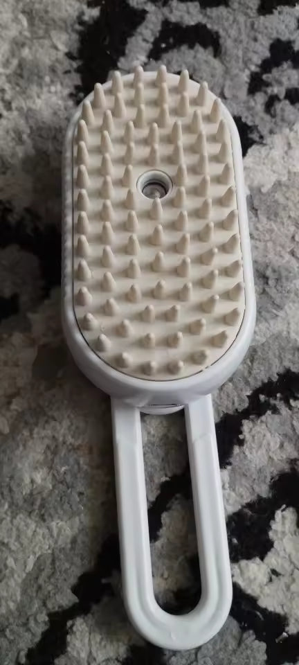 To szczotka pielęgnacyjna z funkcją pary, przeznaczona do czesania i odświeżania sierści zwierząt domowych. Miękkie silikonowe wypustki delikatnie usuwają luźne włosy i brud, jednocześnie masując skórę pupila. Para wodna pomaga zmiękczyć sierść i ograniczyć jej elektryzowanie. Szczotka jest wygodna w użyciu i odpowiednia zarówno dla kotów, jak i psów.