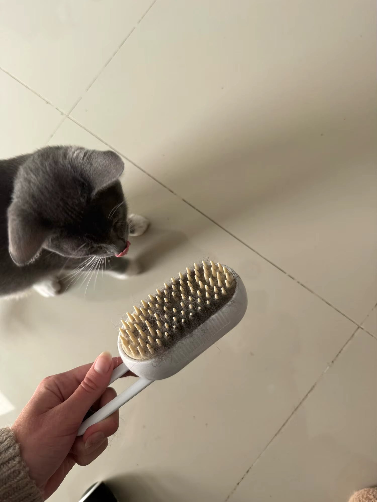 Nasza szczotka bardzo ładnie zbiera sierść i zwierzaki to kochają bo jest bardzo delikatna i przyjemna